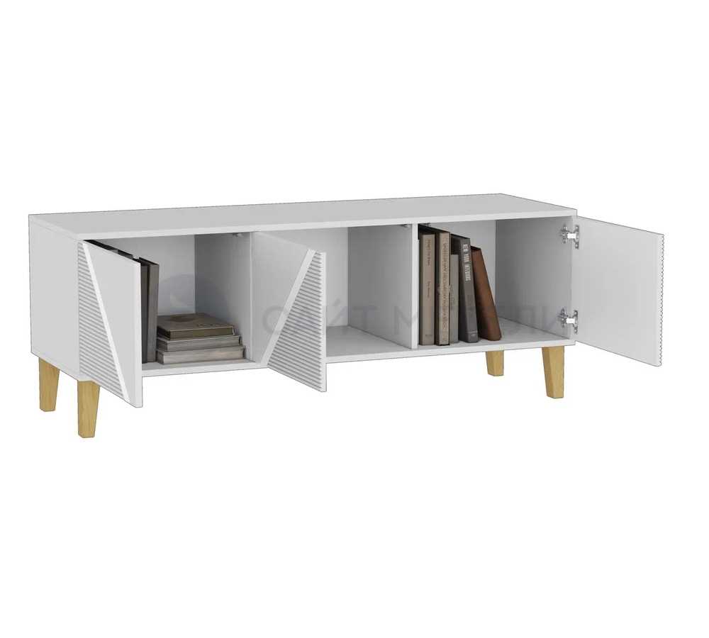 Тумба под ТВ Непал с фасадами МДФ с современной фрезеровкой в виде полос. Эта тумба (1386 мм) сочетает продуманную функциональность трёх секций с изысканным дизайном. Фрезерованные фасады создают изящный акцент, а приподнятые на ножках, они делают мебель визуально лёгкой и удобной в уходе. Идеальное решение для организации пространства и демонстрации вашего стиля.