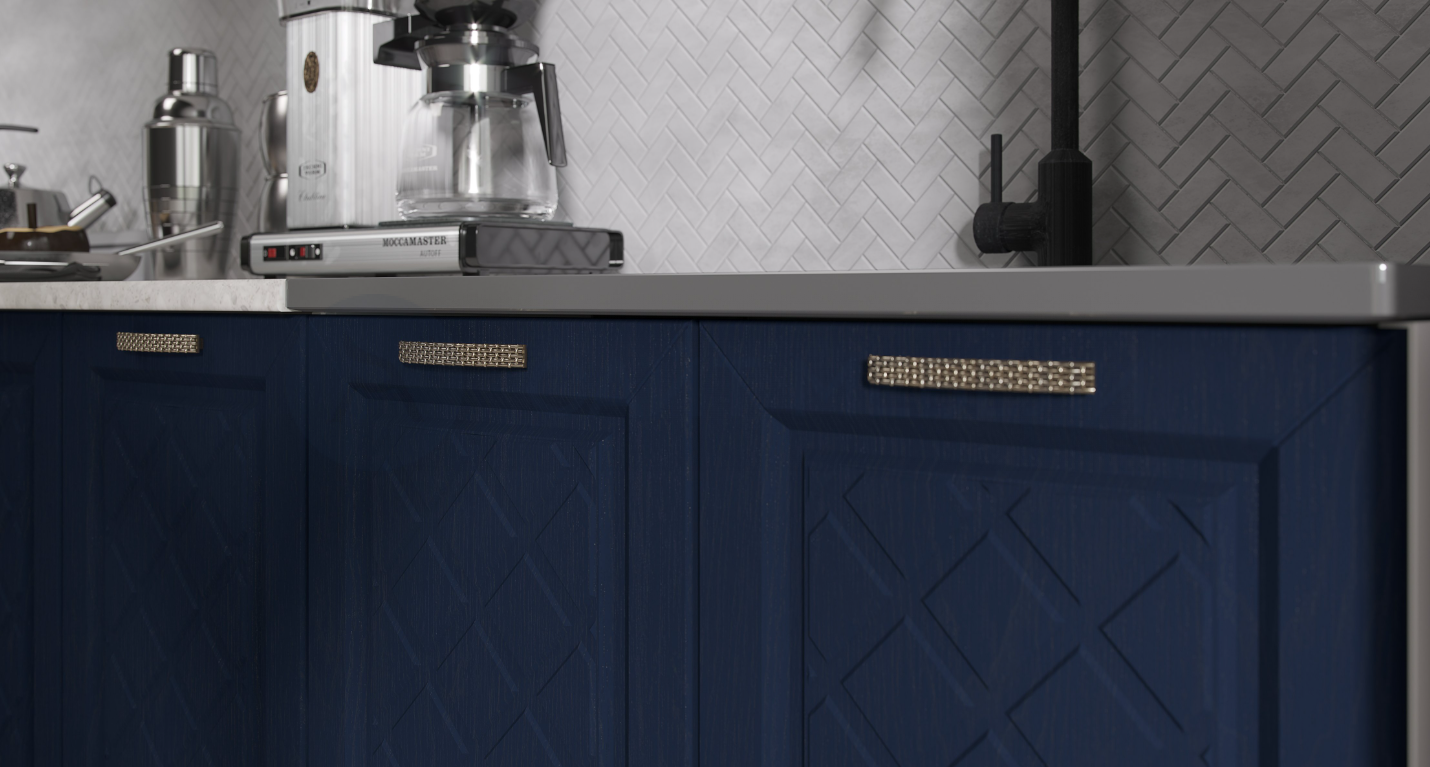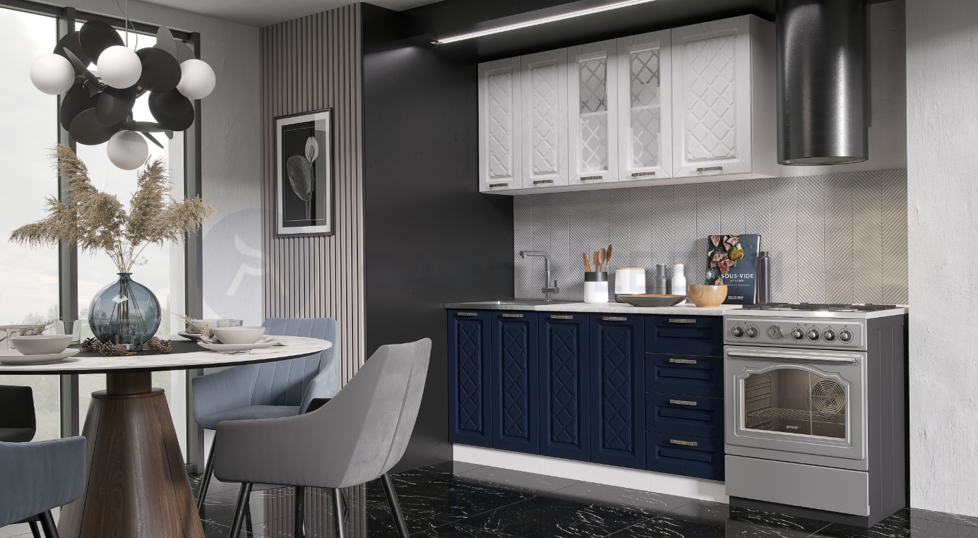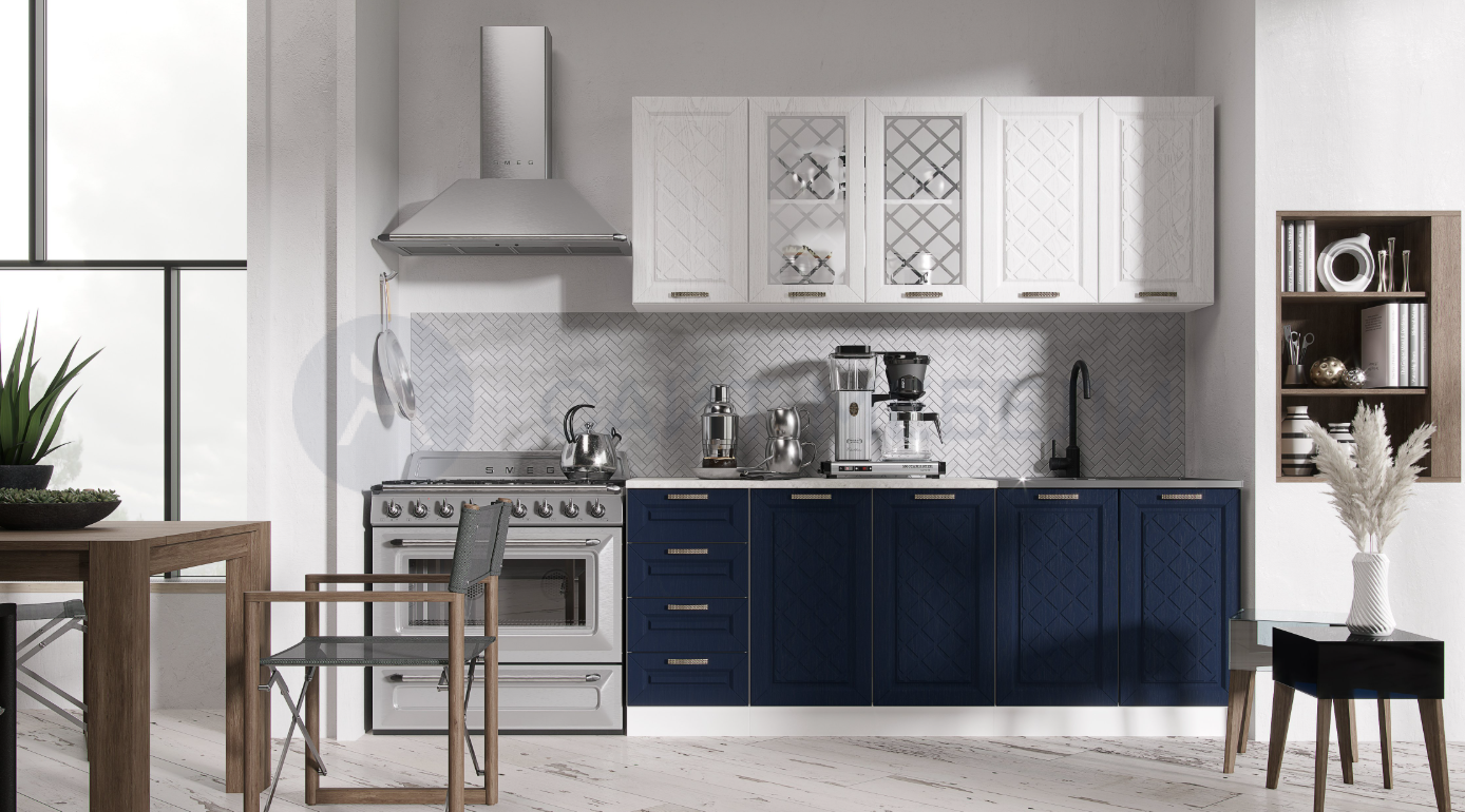 Фасады: МДФ, акация белая/сапфир.