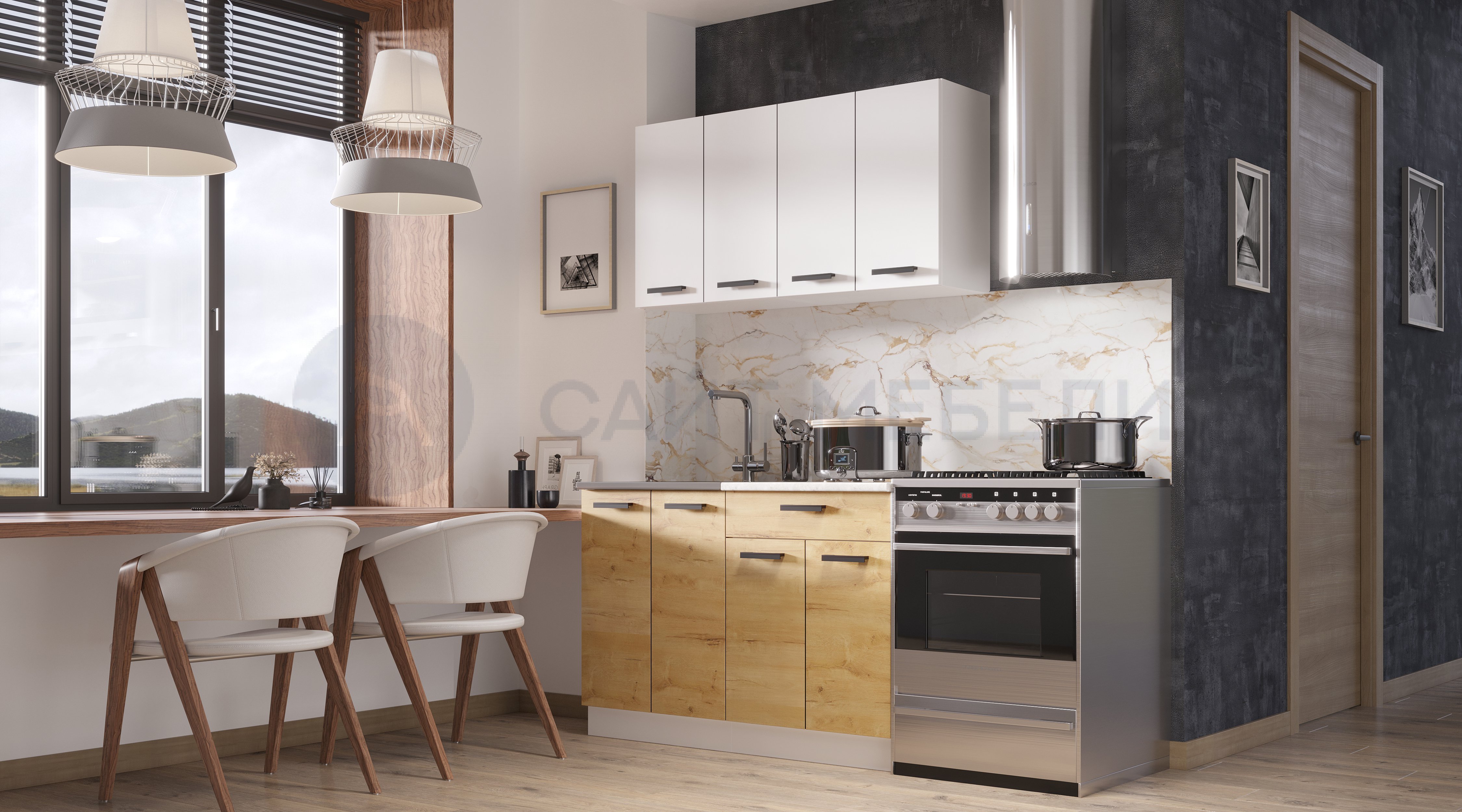 - высота общая 206 см, нижние шкафы 80,6 см (со столешницей 83,2 см), верхние шкафы 62,6 см.