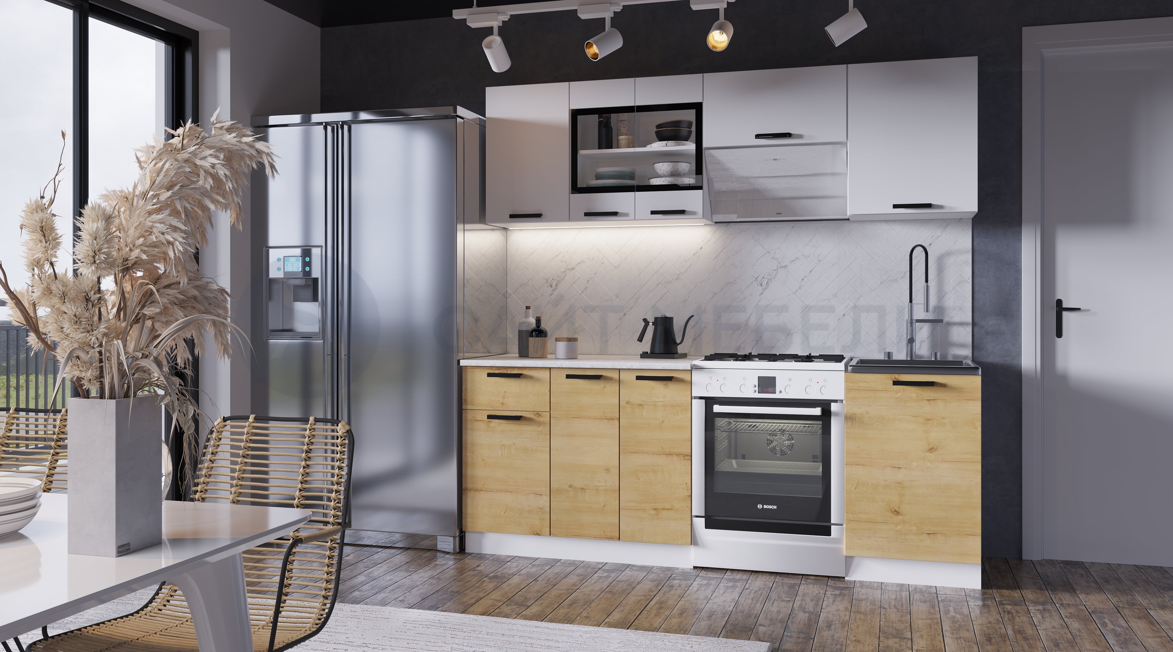 Фасады- ЛДСП, верх- белый, низ- дуб вотан.
