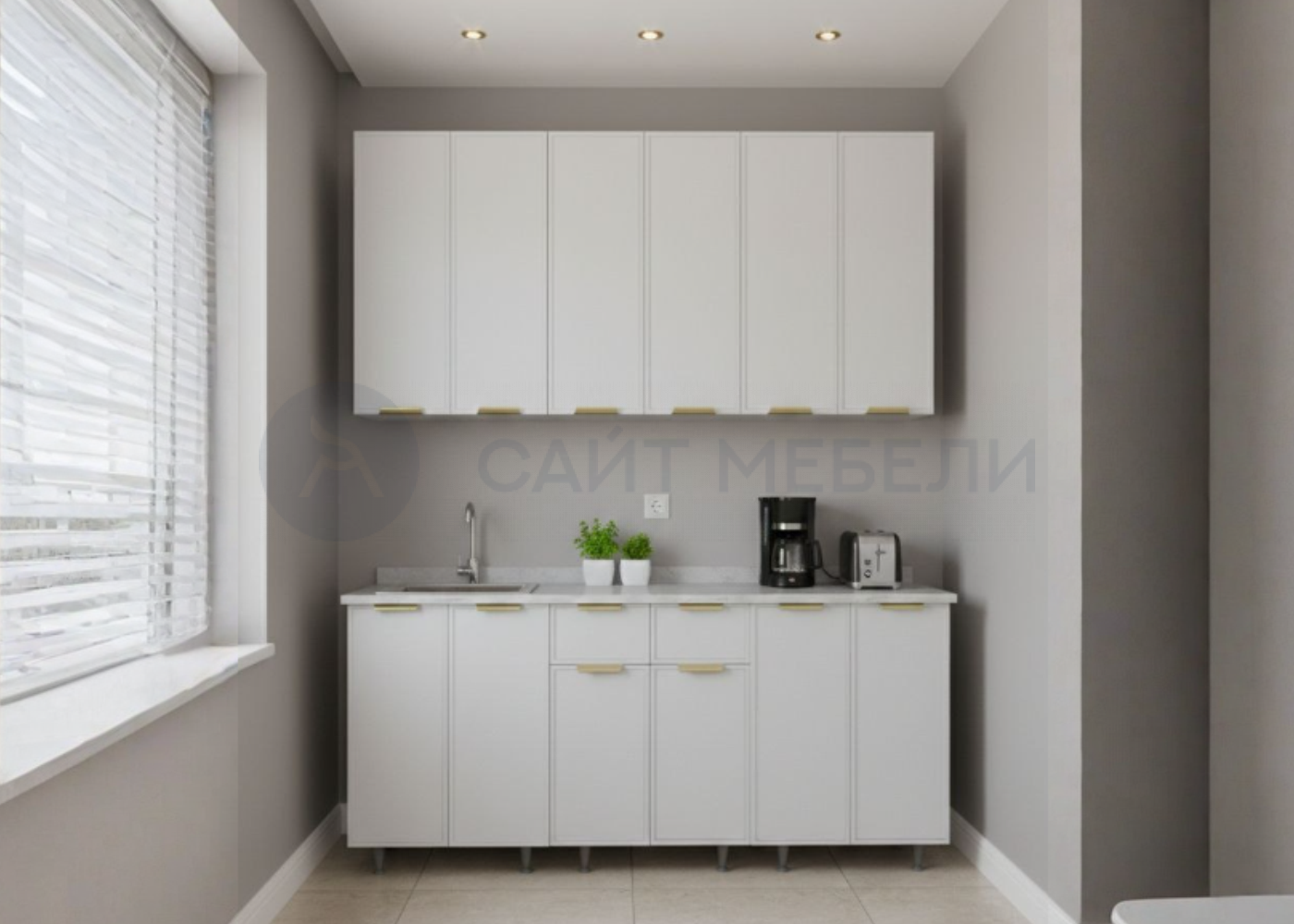 Белый кухонный гарнитур длиной 1,8 метра.