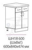 Нижний шкаф шириной 60 см с двумя ящиками и дверками. Внутри полка.