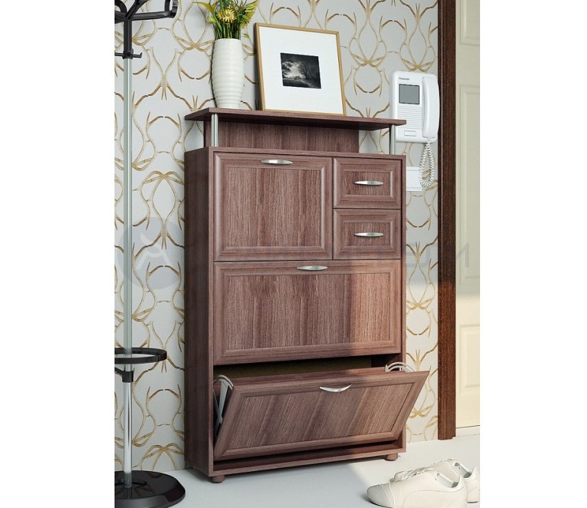 Наполнение: две широкие и одна узкая откидные секции, два выдвижных ящика, регулируемые ножки-опоры.