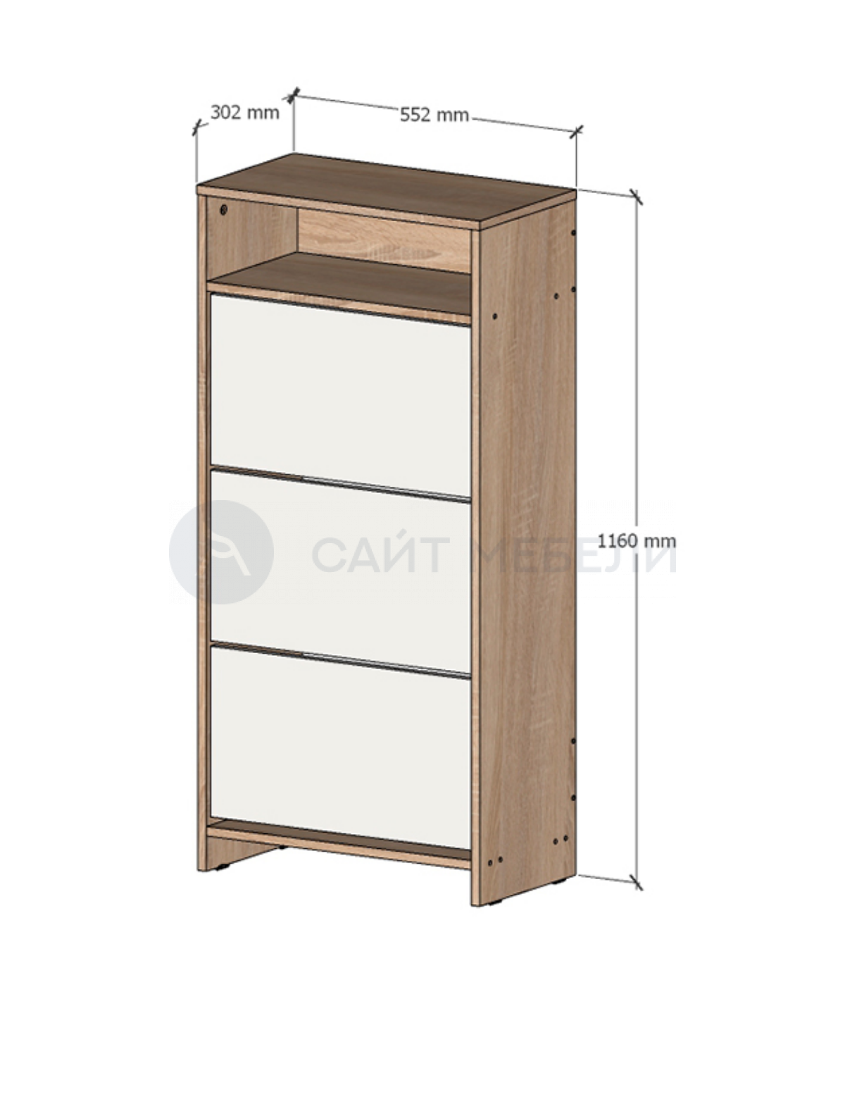 Тумба для обуви в прихожую (обувница) с тремя откидными дверками.