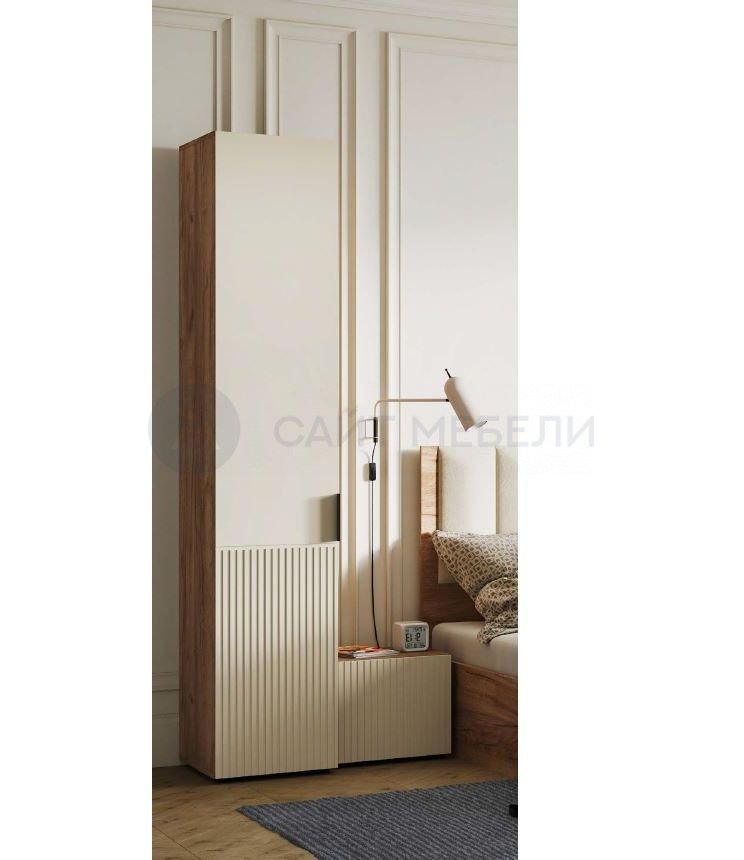Шкаф-пенал Соната ШК 01. Коллекция мебели "Соната" — это баланс строгих линий, мягких форм и практичности. Вдохновлённая ритмом и гармонией, она создаёт атмосферу спокойствия и уюта. Современный стиль с элементами неоклассики делает её уместной как в городских квартирах, так и в элегантных загородных интерьерах. Преимущества коллекции: фасады с вертикальной фрезеровкой - геометрия фасадов, которая задаёт визуальный ритм, придаёт интерьеру архитектурность и глубину; нейтральная, тёплая палитра - спокойные оттенки, текстура дерева и матовые поверхности, которые создают уют и легко вписываются в любой интерьер. Гибкие модульные решения - шкафы, тумбы, комоды, ТВ-зоны и модули для прихожей, которые можно адаптировать под любые задачи. Эстетика и организация - вертикальные рельефные фасады - создают ощущение лёгкости и простора, а продуманные модули помогают легко поддерживать порядок в повседневной жизни.