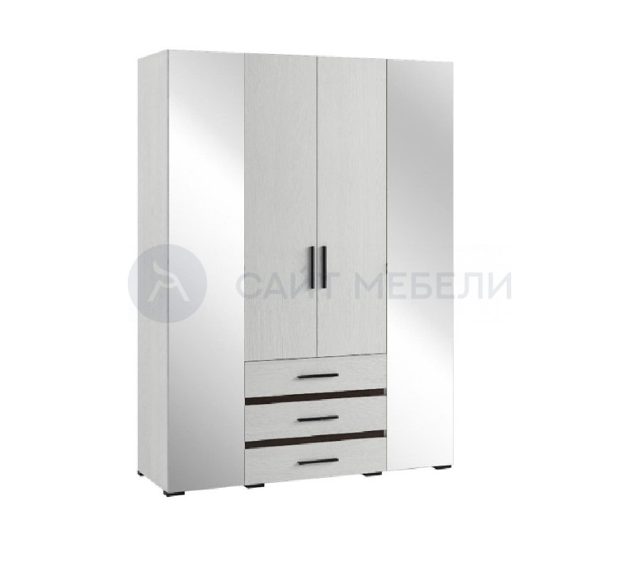 Шкаф 4х-дверный Модена МШ-24 Вместительный распашной шкаф, функциональное наполнение которого разделено на симметричные половины, что очень удобно для зонирования гардероба. За глухими распашными фасадами скрывается стационарная металлическая штанга, за зеркальными - отделения с четырьмя полками. Три вместительных ящика для хранения белья установлены на шариковые направляющие полного выдвижения. Элегантная накладная ручка позволит открывать дверцу левой и правой секций, не прикасаясь к зеркальному полотну, а, значит, его не придется часто протирать.