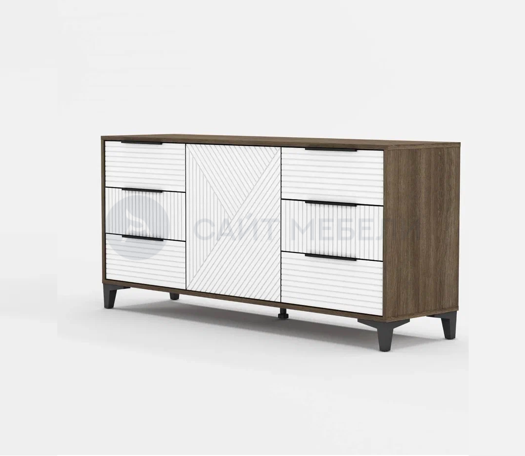 Комод-тумба с фасадами МДФ с современной фрезеровкой в виде вертикальных и горизонтальных полос.