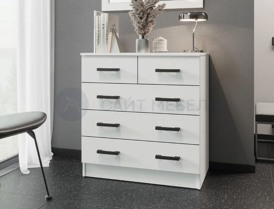 Комод с 5 выдвижными ящиками: 3 стандартных и 2 узких.