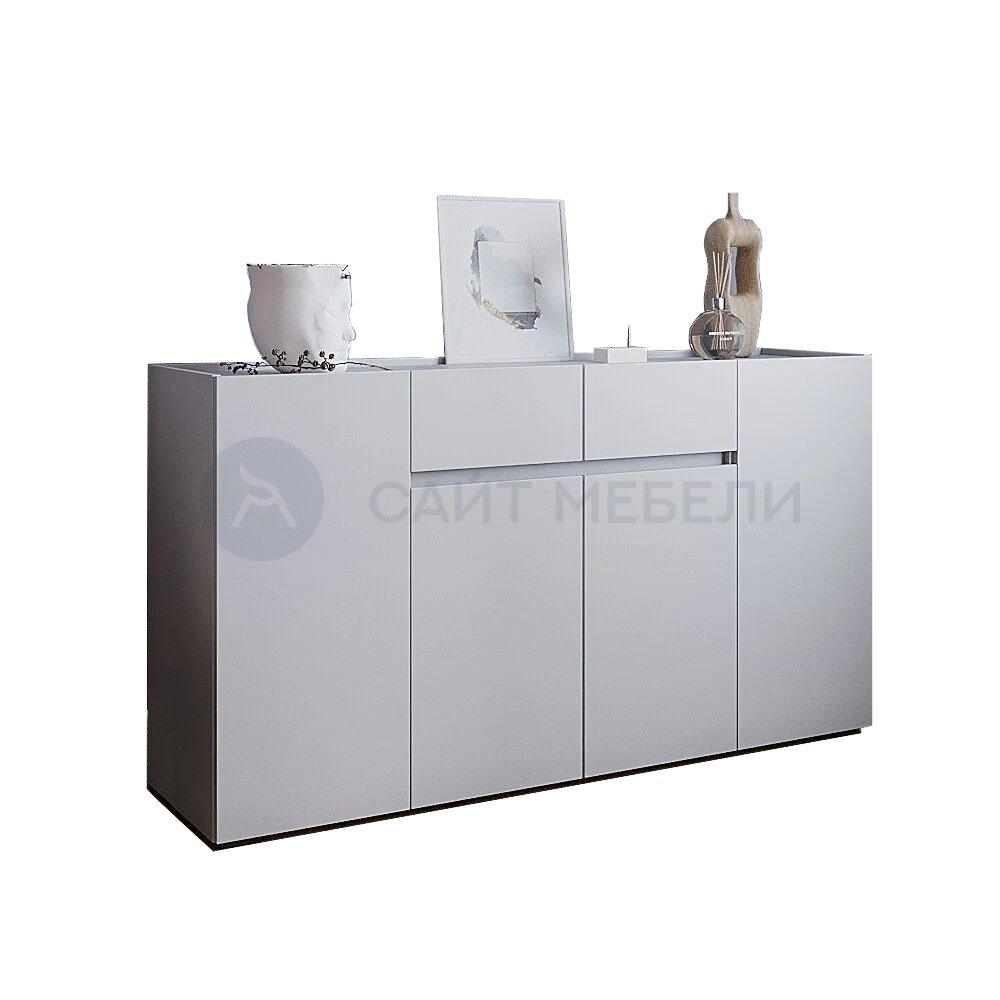 Комод белый в скандинавском стиле "без ручек" с 4 распашными створками и 2 выдвижными ящиками.