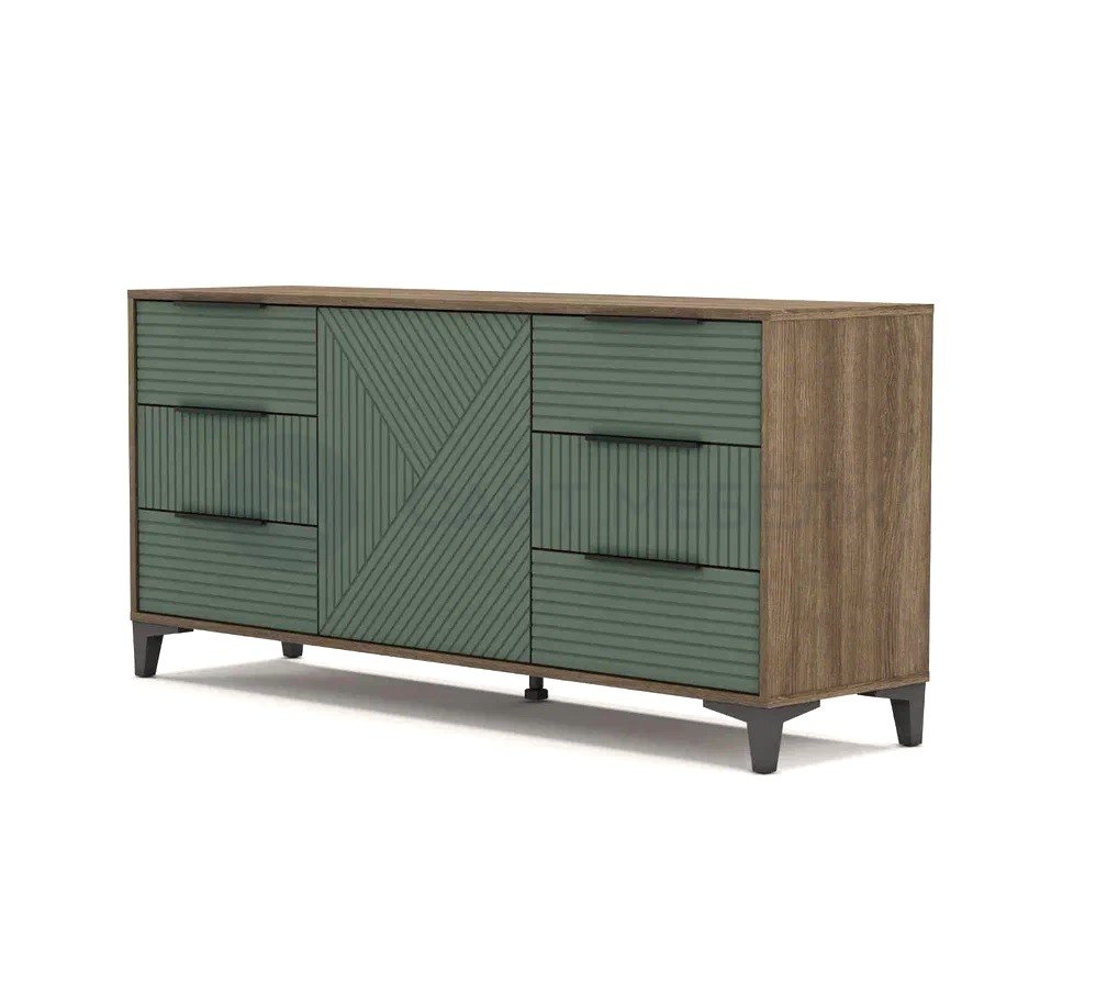 Комод-тумба с фасадами МДФ с современной фрезеровкой в виде вертикальных и горизонтальных полос.