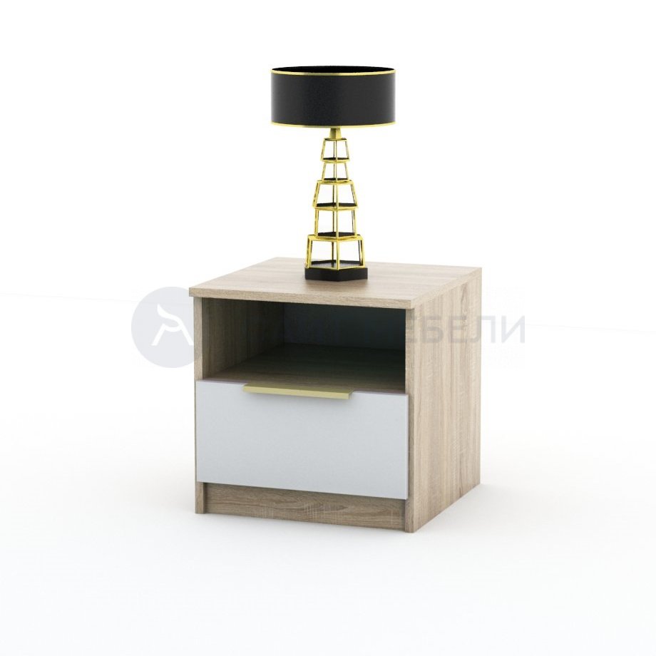 Прикроватная тумба с выдвижным ящиком и открытой полкой.
